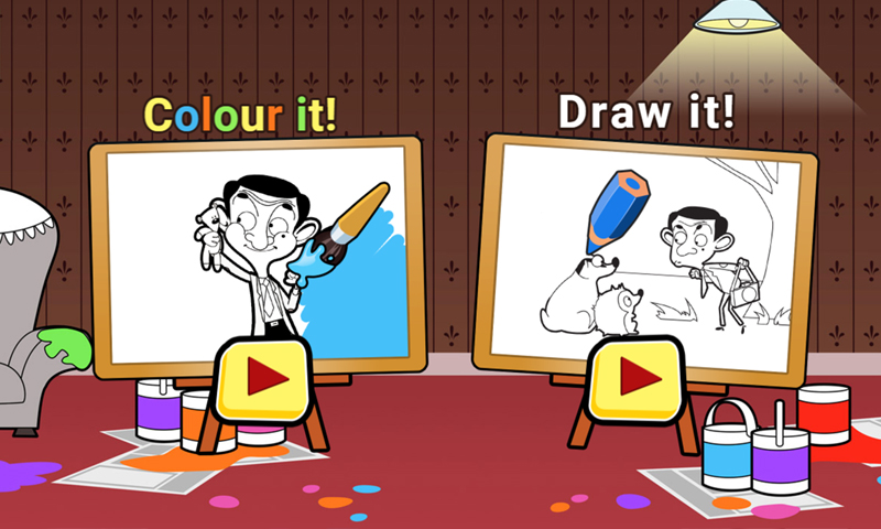Este es un juego básico de dibujo y pintura para niños basado en la serie animada de dibujos animados Mr. Bean. Selecciona si quieres dibujar o pintar.