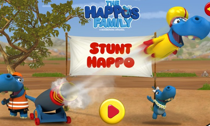 ¡Juega al juego The Happos Family: Stunt Happo para lanzar a uno de los hipopótamos a través de un cañón! ¡Mira hasta dónde puedes llegar mientras rebotas sobre varios objetos!