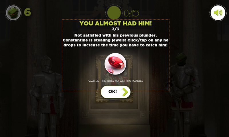 ¡Juega al juego Muppets Most Wanted: Catch Constantine para ver si tienes buen ojo! ¡Encuentra al peligroso criminal y ayuda a Kermit a recoger sus rubíes!